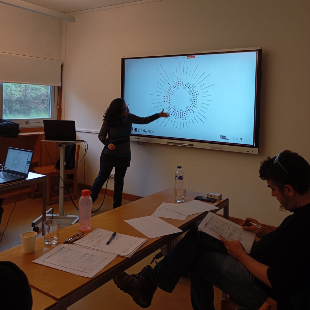 The session included presentations by the project team — Professor Ivo Oliveira (EAAD/Lab2PT/IN2PAST), Daniel Casas-Valle (Urban Dynamics/UPorto) and Marcela Percú (Lab2PT/IN2PAST/UMinho) — and interventions by consultants from different areas. The program also included a study visit to the requalification of Parque das Hortas (2016), guided by Architect Clara Castro, from the Guimarães City Council, an intervention that converted a degraded area into a public green space, connecting the historic center to the city park through accessible, resilient and environmentally qualified public spaces.