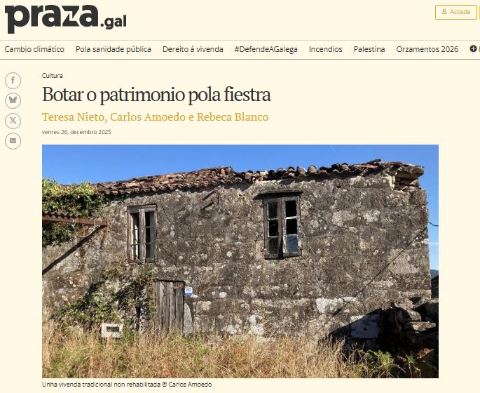 Opinion article published in the Galician newspaper Praza, which critically analyses the impact that the amendments to Law 5/2016 on Galician cultural heritage will have on Galician heritage in the context of the draft Law on Fiscal and Administrative Measures of 20 October 2025 currently being debated in the Galician Parliament, which will come into force on 1 January 2026.
