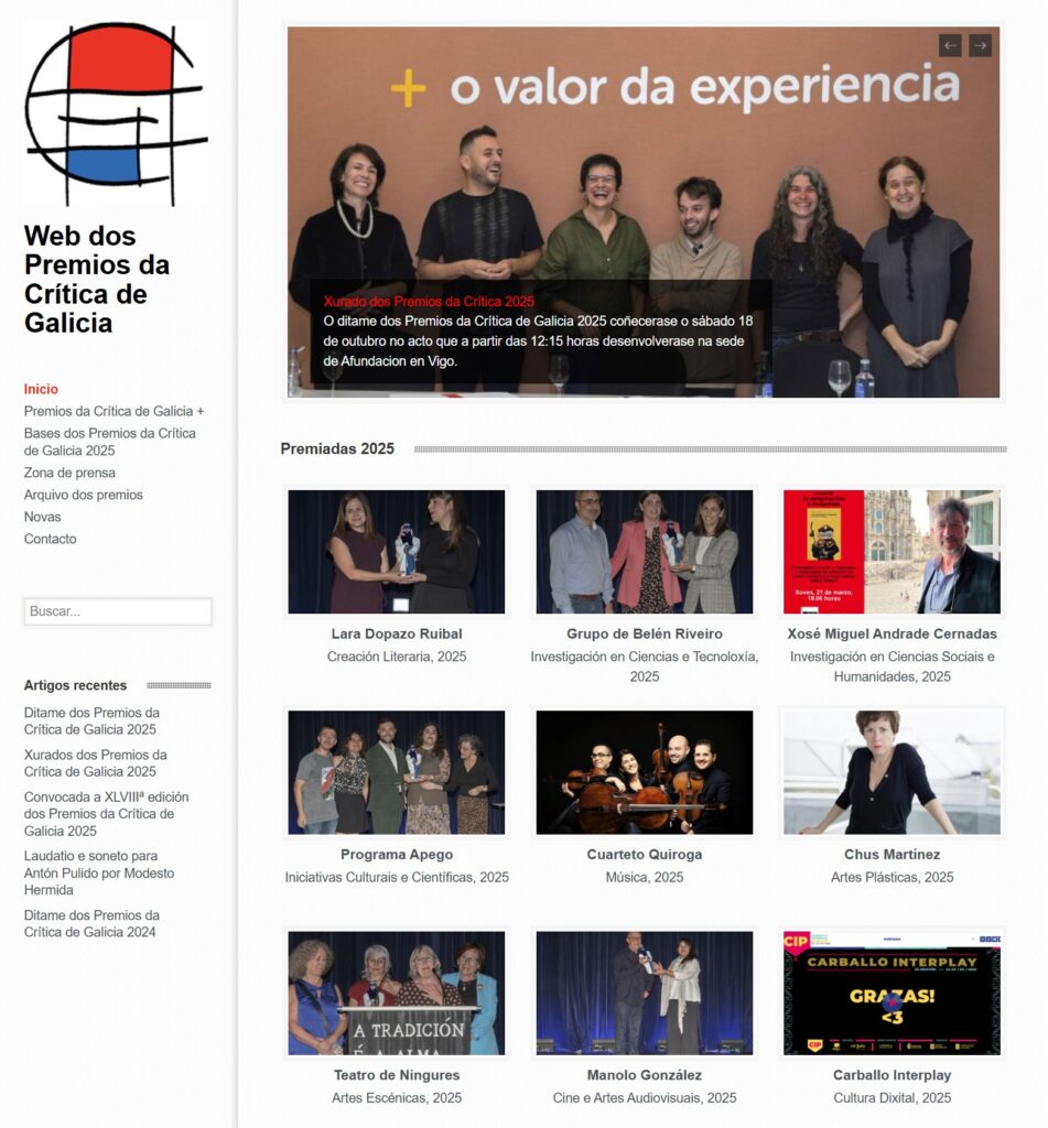 These awards have been given out every year since 1978 to recognise the excellence and relevance of the most outstanding individual and collective works in the various fields of cultural creation and research in Galicia. These awards were created by civil society as a plural, independent and intergenerational platform, with the main objective of taking the pulse of Galician cultural creation.