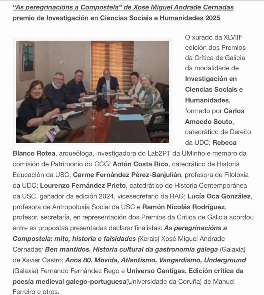 Lab2PT7IN2PAST researcher Rebeca Blanco Rotea integrated the jury for the Crítica da Galicia awards, in the category of Research in Humanities and Social Sciences.