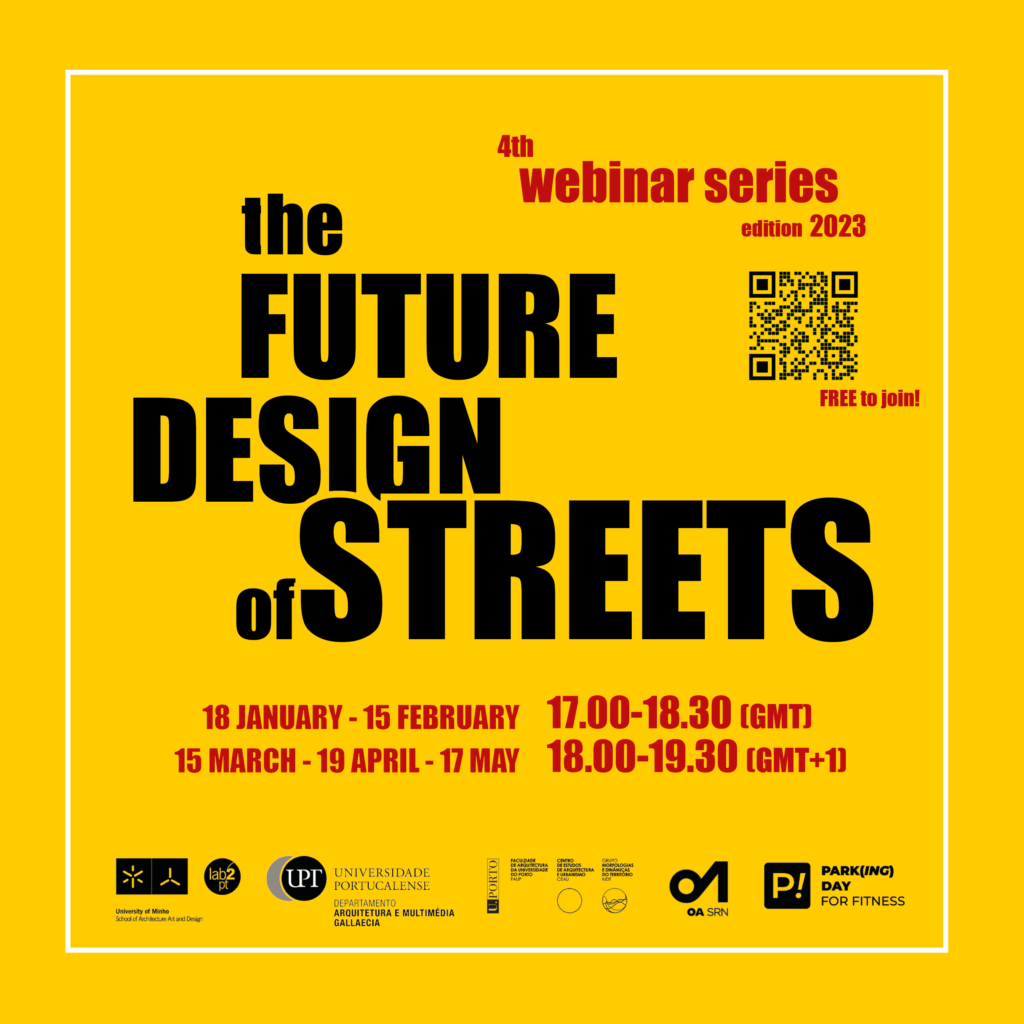 The 2nd session of the webinar will be followed (from 6.30 pm to 7 pm) by a brief debate and the inauguration of the exhibition the Future Design of Streets. An exhibition that presents themes that are fundamental to the transformation of the streets and that were part of the interventions made by the more than 45 participants in the 2020, 2021 and 2023 editions of the Webinar.