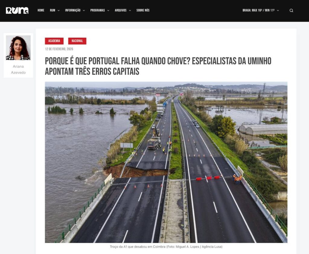 Hélder Lopes participou no programa/notícia da RUM “Porque é que Portugal falha quando chove? Especialistas da UMinho apontam três erros capitais”