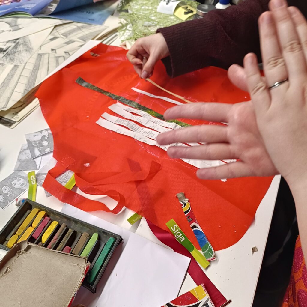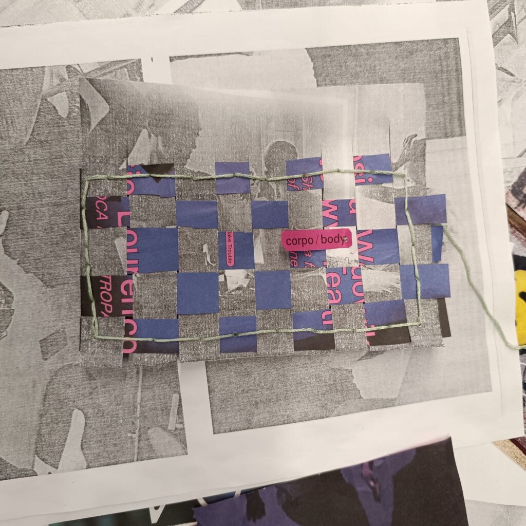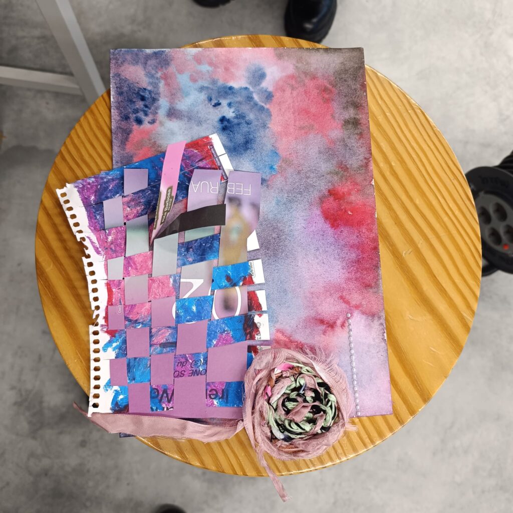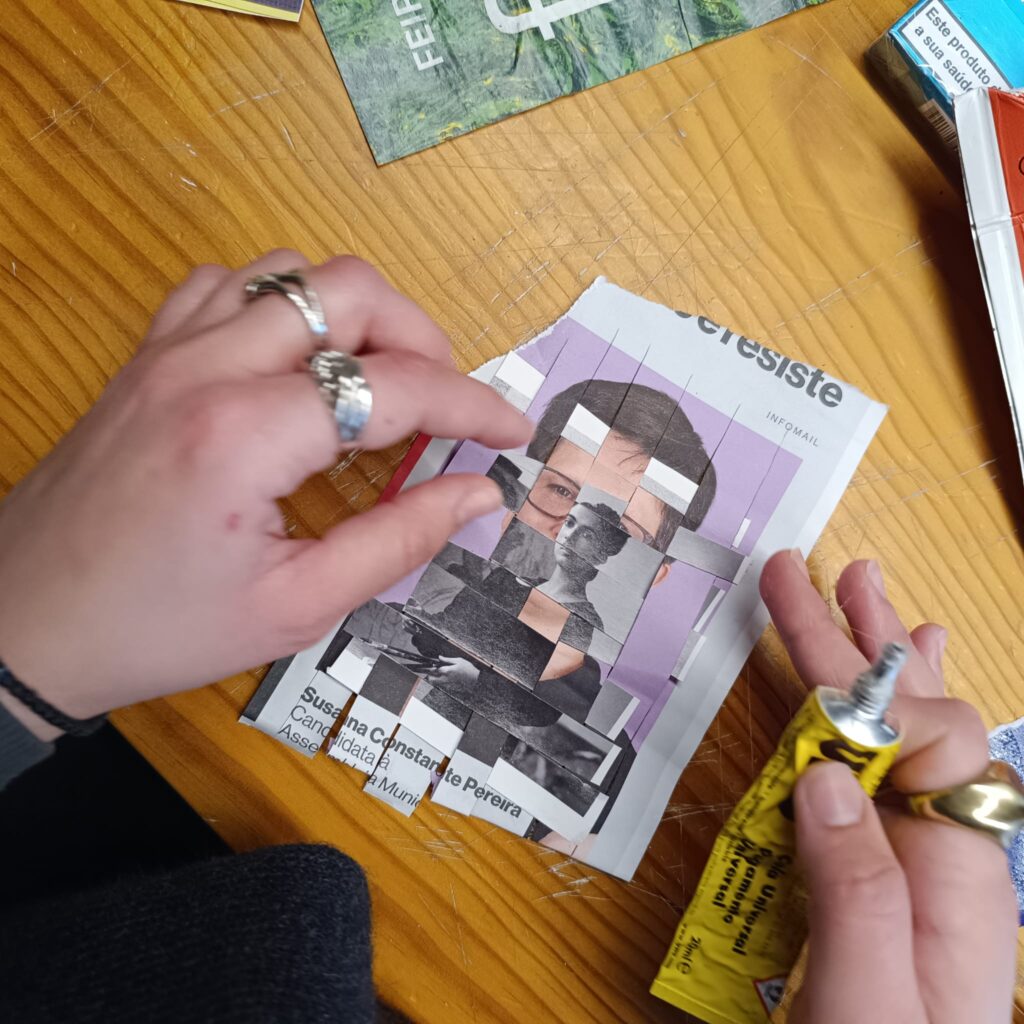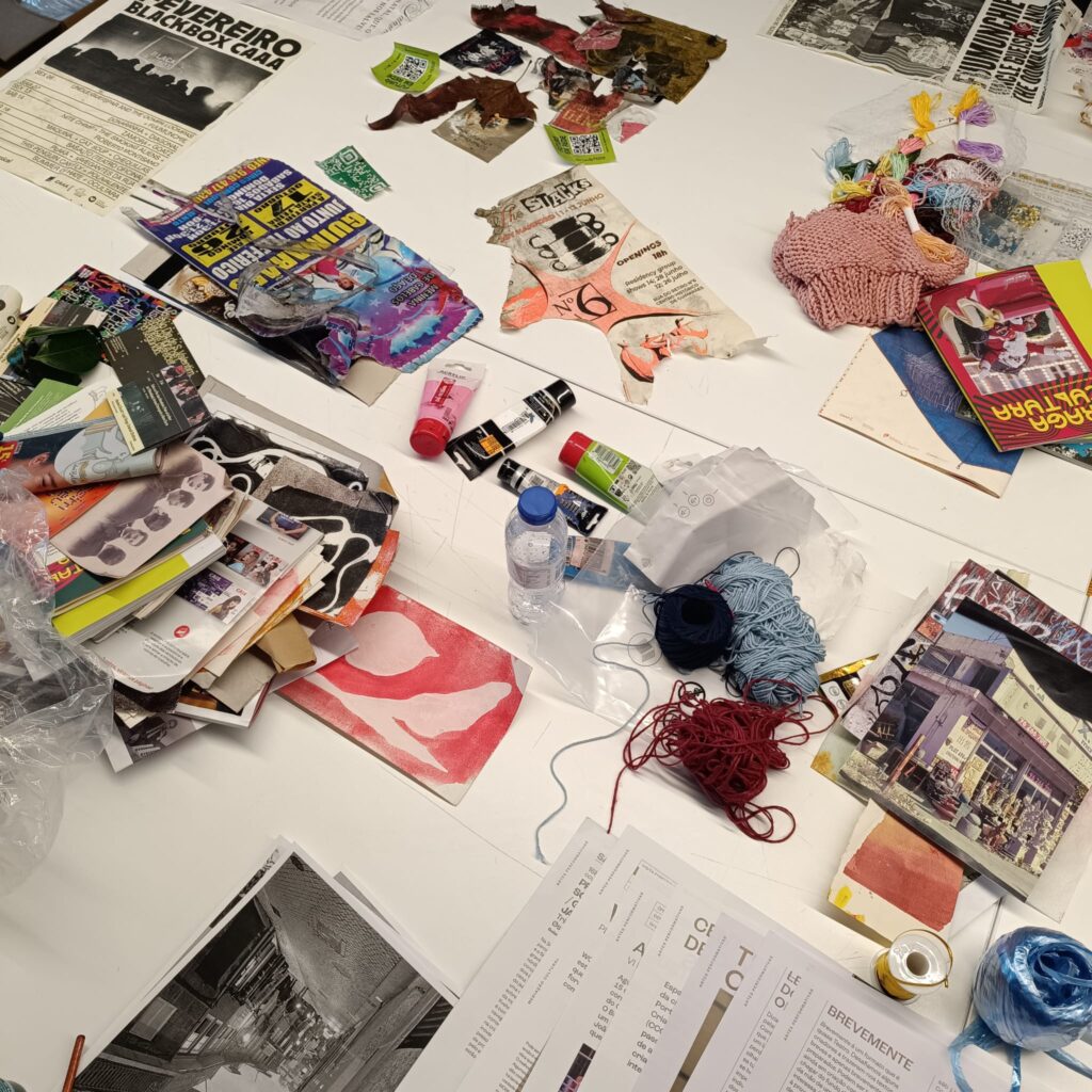Após o passeio, o grupo regressa ao estúdio, onde os alunos começarão a trabalhar com os materiais recolhidos e as suas fotografias pessoais. Através de técnicas de tecelagem, entrelaçamento, sobreposição, corte e colagem, os participantes irão experimentar combinar memórias pessoais e fragmentos urbanos em novas composições híbridas. Fios, tecidos, papel e materiais encontrados serão usados para «ligar» física e conceitualmente as imagens, permitindo que novas narrativas e relações visuais surjam.