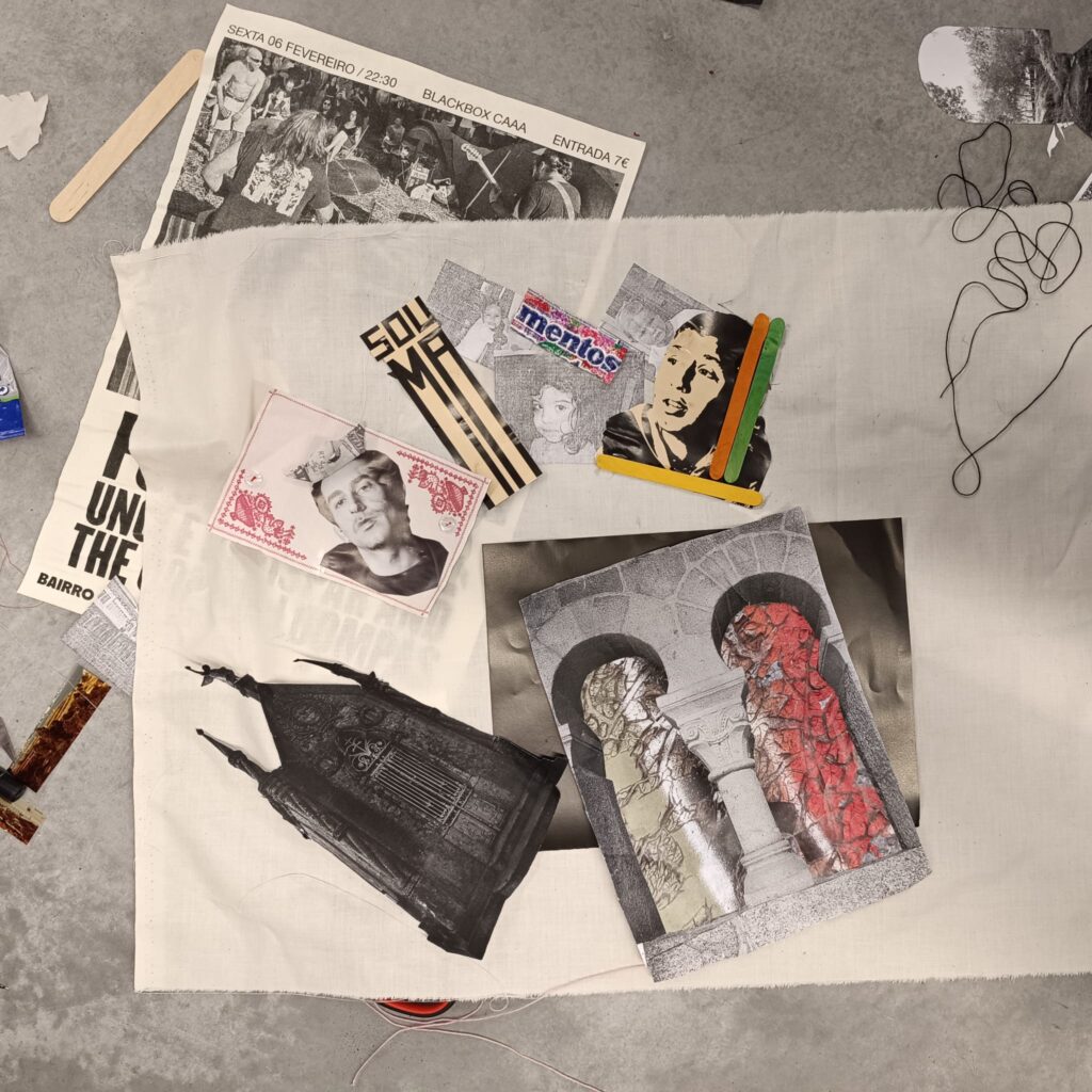 Fios da Memória × Fragmentos Urbanos é um workshop prático que explora a relação entre a memória pessoal e o ambiente urbano através da caminhada, da recolha, da fotografia e da colagem têxtil.
